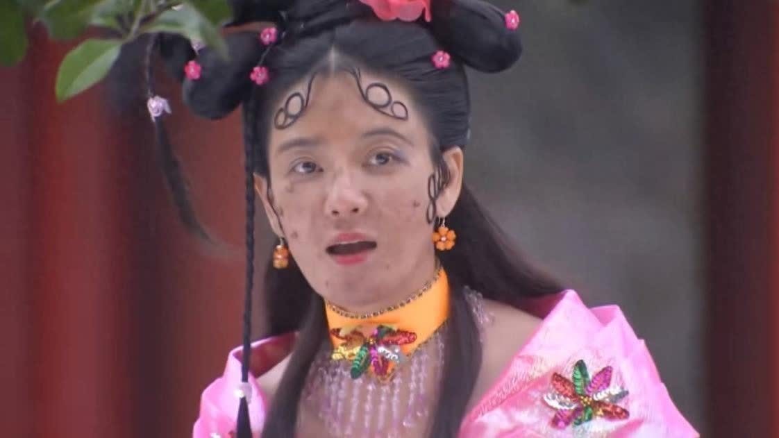 后来的影视作品里,似乎很难再见到像这样毫不顾忌自身形象的演员了。角色满脸痦子,皮肤黝黑,眉毛杂乱,那凌乱不堪的发型搭配俗气的发饰,还有张扬浮夸、充满高饱和色系的衣裙,整体就像一个颜料盘。特别是那丑而不自知的性格,面对任何人都泼辣不留情,与毕潘安之间的互怼,堪称全剧经典场面。那大张大合的肢体动作,叉腰、跺脚、翻白眼、脏话连篇,将一个丑角演绎得淋漓尽致。